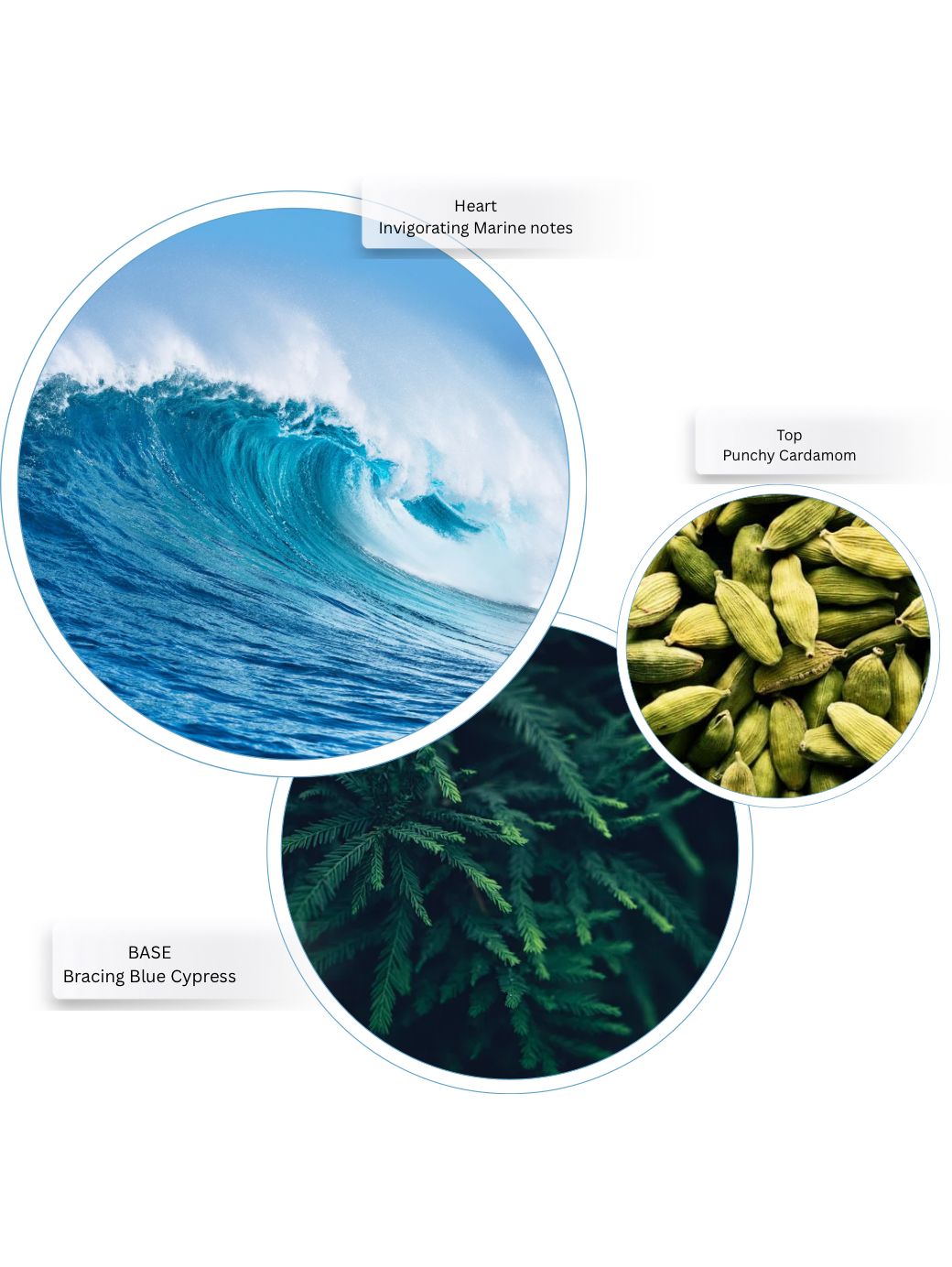 A salt-sprayed collision of the ocean swell against rugged outcrops. The shore air fresh with crisp fig leaves mingled with unexpected, punchy cardamom, joyful bergamot and marine notes. Bracing cypress, cedarwood and musks bring natural, earthy appeal. Explore on the edge; awash your senses with a sea-soaked quest.